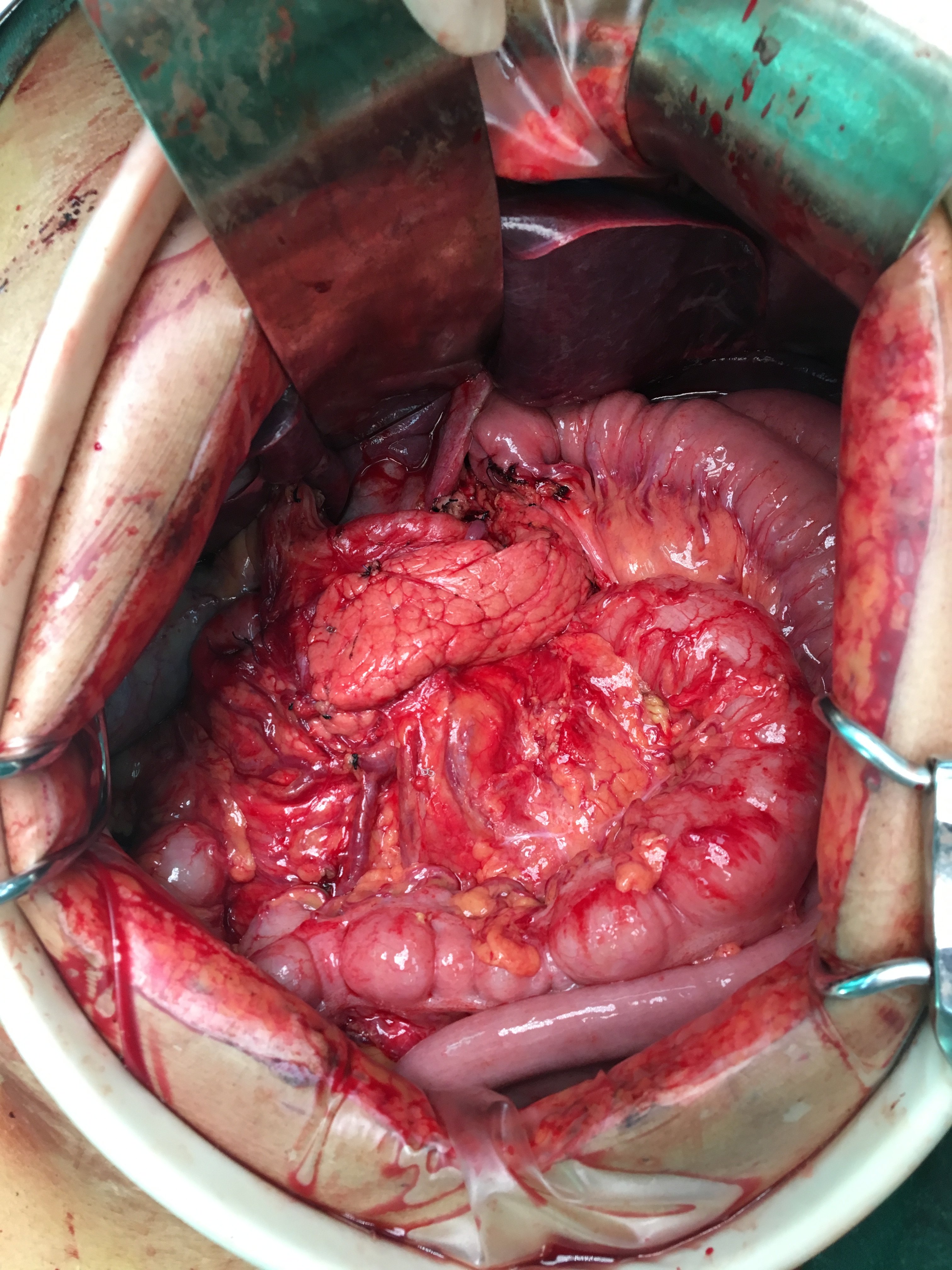 胃切除后,需要做消化道的重建,对于已经做过食管癌根治术的老张而言,这次手术对空肠袢(消化道重建的一种)的制作要求更高。肠需要一直拉到胸腔主动脉弓平面,因此需要游离出60cm左右的小肠袢,而且一定要保留好血管弓。吻合完毕后,两科再一起修补膈肌裂孔疝,最后关胸关腹。