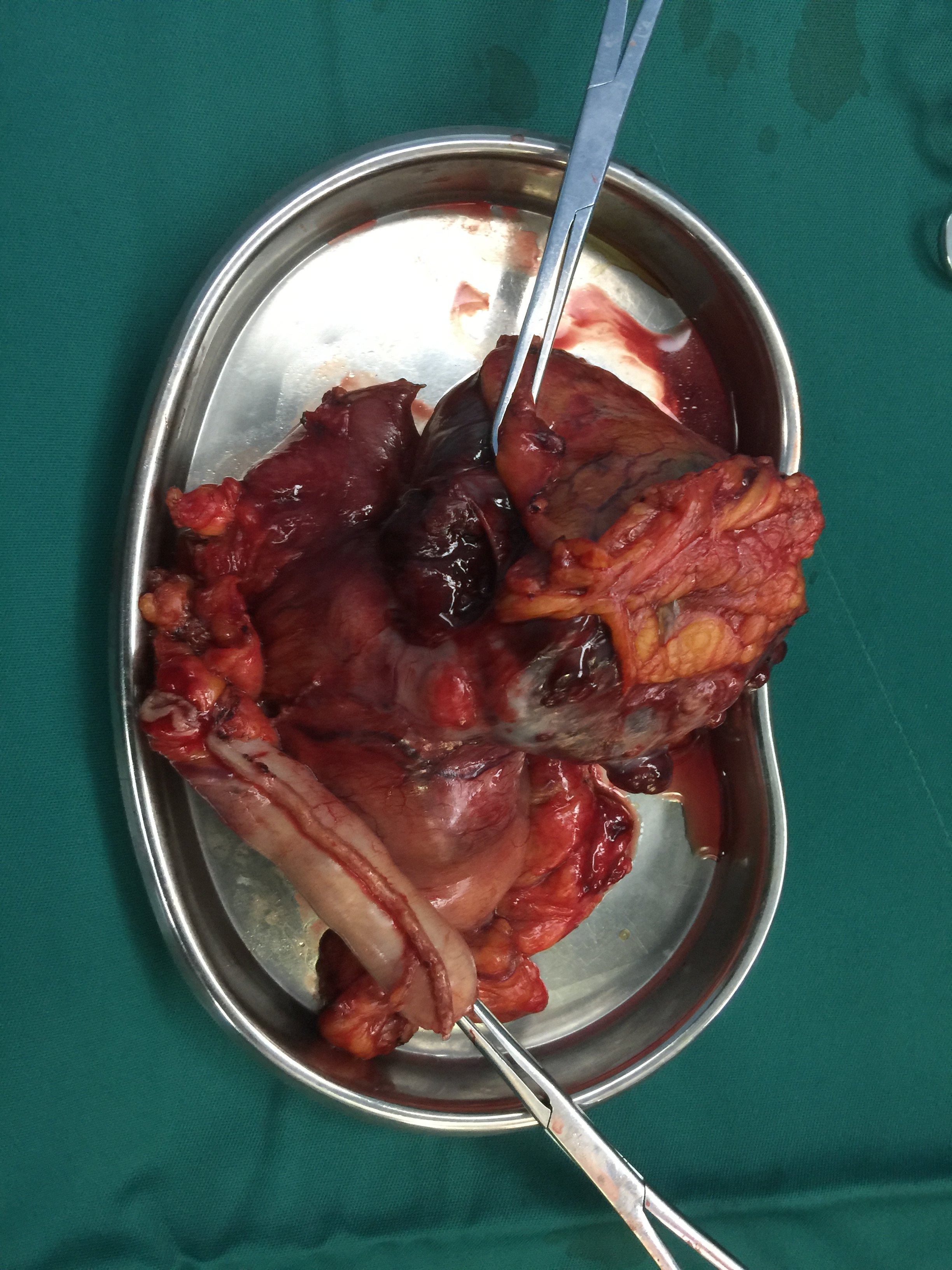老张随即来到江大附院胃肠外科副主任孙康主任医师的专家门诊。CT及上消化道造影提示,食管癌术后改变,胃体大弯侧局部胃壁增厚,残胃占位病变。仔细查阅患者的影像资料后,孙康主任和医疗小组的谢嵘主任医师、杨家红主任医师达成了共识:因为食管癌手术切除了病变的食管及部分胃体,所以造成胃整体上移,大部分胃已经进入了左侧胸腔,且胸腔粘连严重,还合并有膈肌裂孔疝。